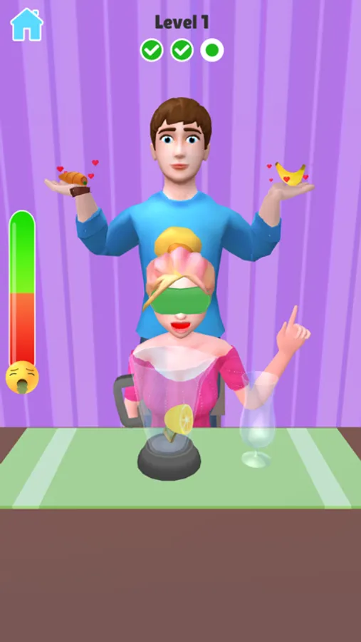 Party Prank: Drink Challenge is a party challenge fun game with a girlfriend on the date. This party challenge game is a prank game to become a prank master. You're on a date with a blindfolded girl, who patiently waits for your food surprise! You're going to pick delicious and disgusting ingredients to make a smoothie for her and she will randomly choose one by one to put into the blender! You'll be the winner if she eats disgusting food or misses delicious food.