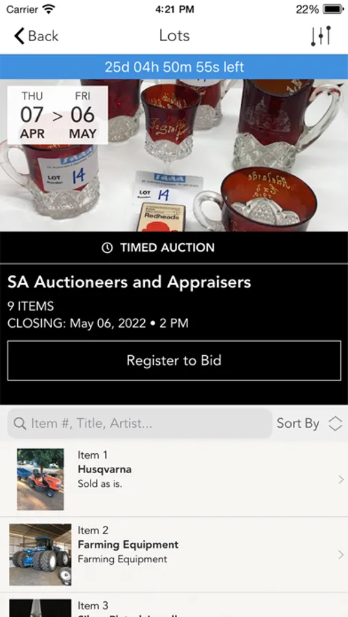 - Watch live auctions