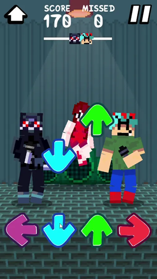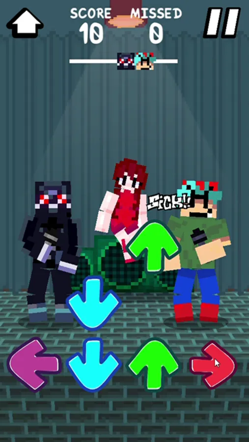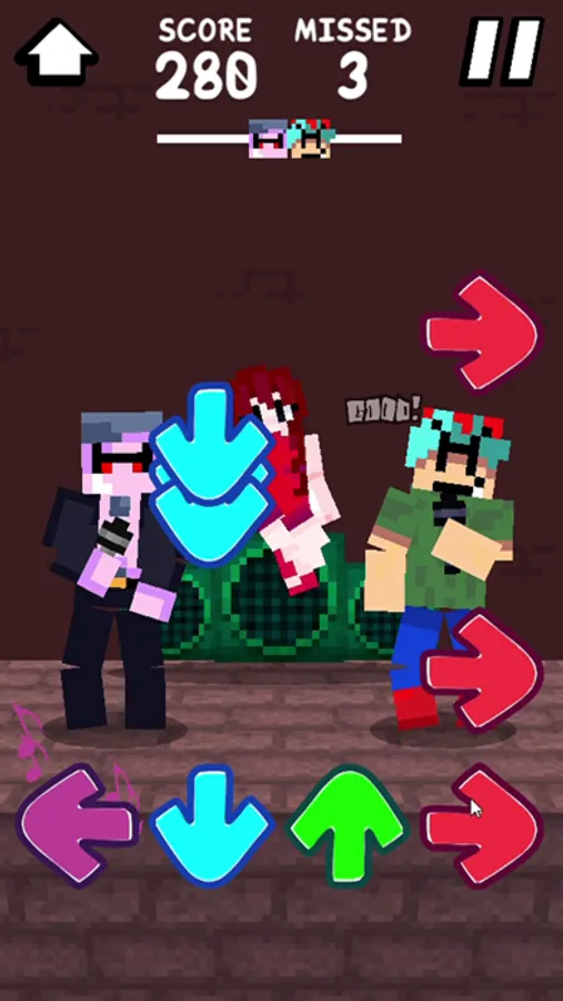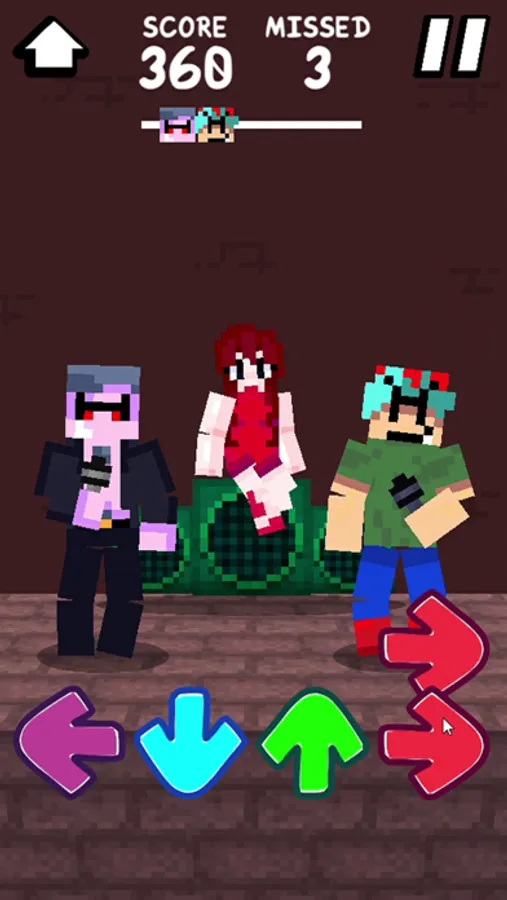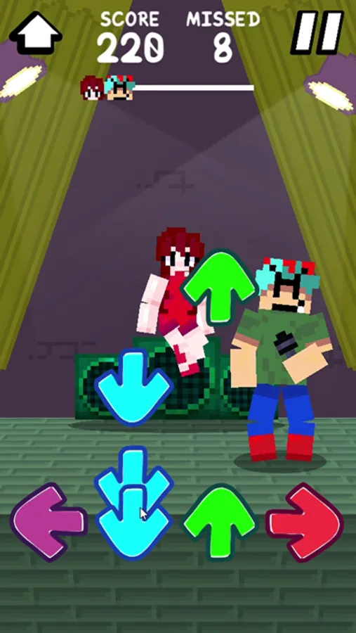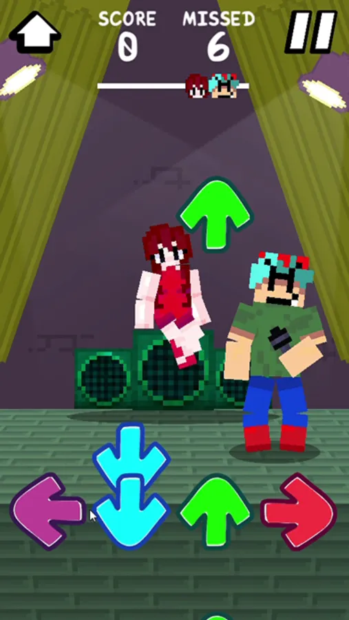 Enjoy new Sunday night Fnf music mod, Mini Craft Music Battle is fun a rhythm matching music game with pixel graphics test your reflexes. Play as pixel fnf boyfriend and tap the right arrows to beat the music.