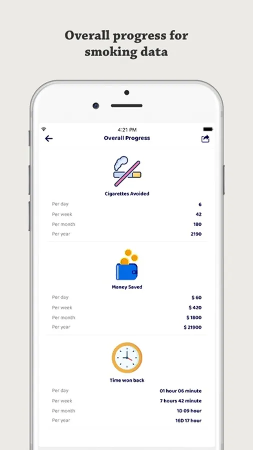 - Quit Smoking and Save Money - See your savings grow with every cigarette you did not buy and treat your success