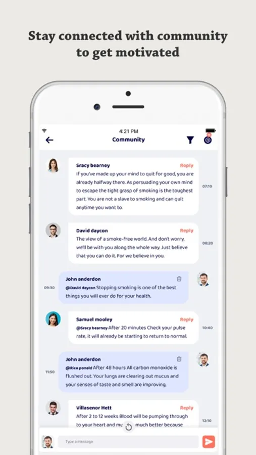 Join Stop Smoking – Stay Sober App Community to stay motivated: