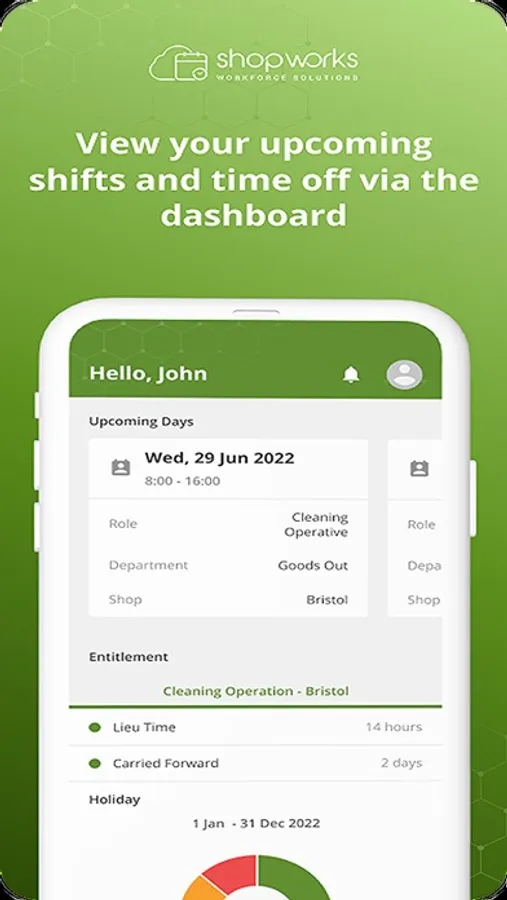With the ShopWorks Self Service Portal App you can keep on top of your working schedule, manage your holiday requests and ensure your worked shifts have been approved by your manager and lots more: