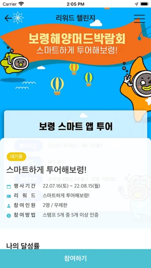 - 보령의 전통시장을 돌아보며 관광하는 리워드 챌리지