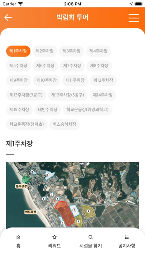 - 주차장 위치부터 단계별 현황을 알 수 있습니다.