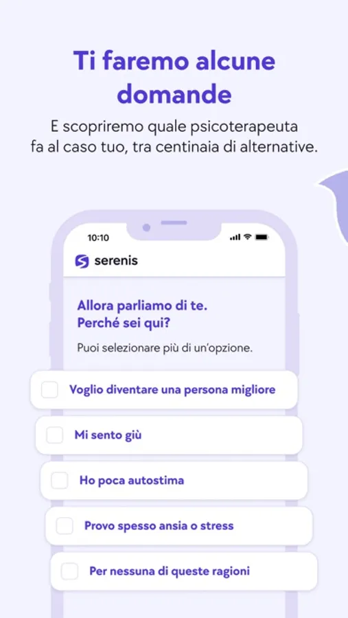 - Trovare la tua o il tuo psicoterapeuta. Dovrai solo rispondere in modo onesto al nostro questionario.