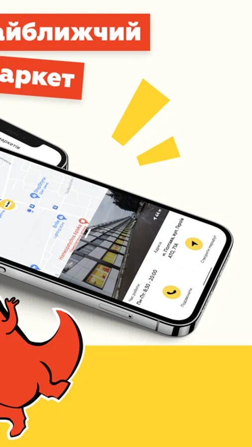 - знаходити найближчий супермаркет TA-DA!, графік роботи та контактний телефон;