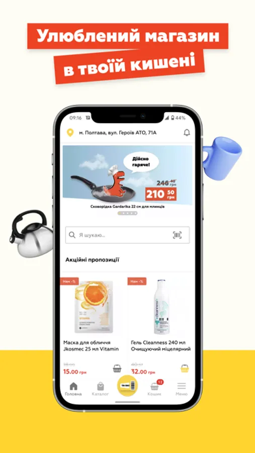 - обирати товари онлайн та створювати замовлення за умови самовивозу із супермаркету;