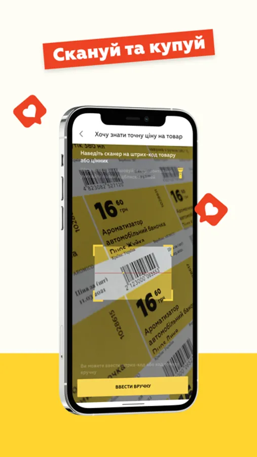 - відскановувати штрих-коди товарів та дізнаватися їх вартість;