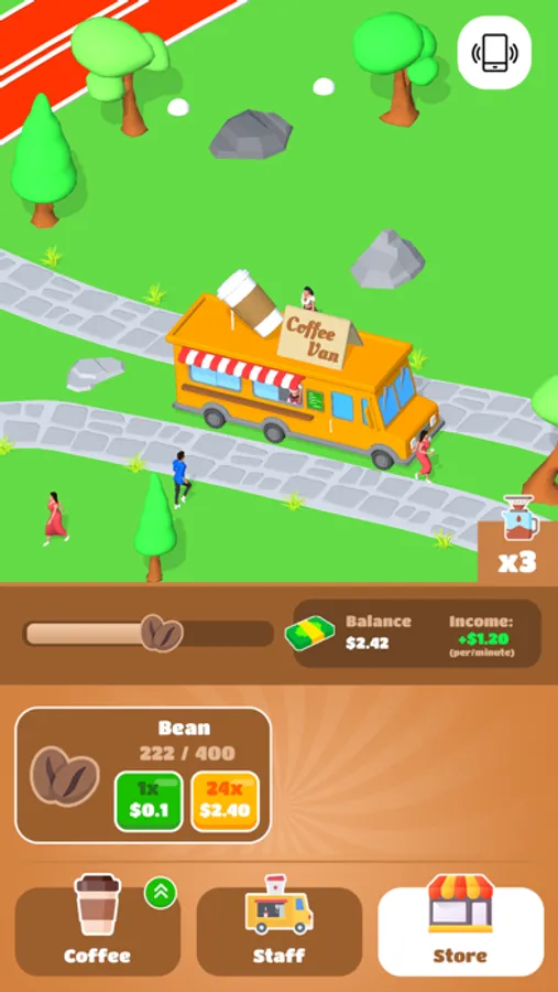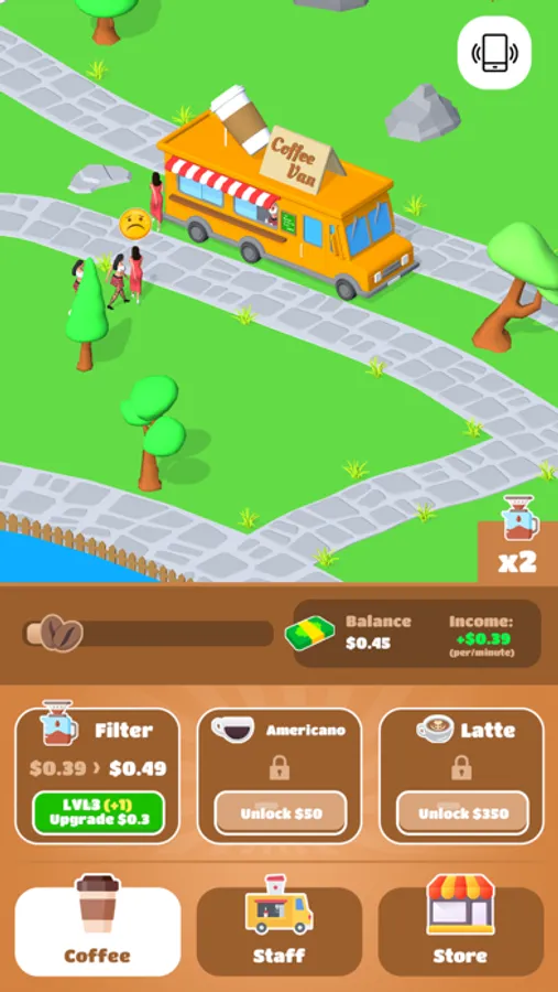 manage a cute mobile coffee shop and meet with your customers.