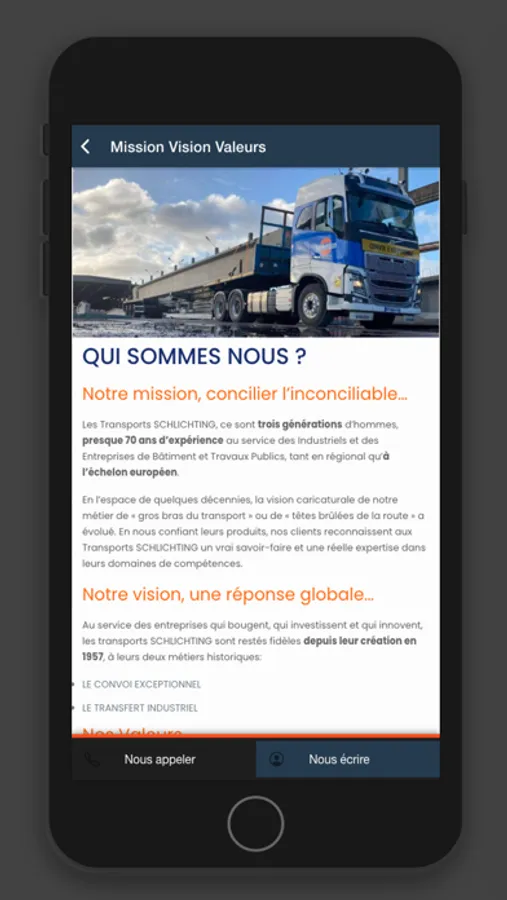 Installez l'application pour obtenir des informations sur notre société, pour nous soliciter, pour nous rejoindre. Nos collaborateurs, dont nous pensons qu'ils sont notre plus grand atout, auront quant à eux accès à un espace privé pour partager, dialoguer et gérer leur quotidien au sein de l'entreprise.
