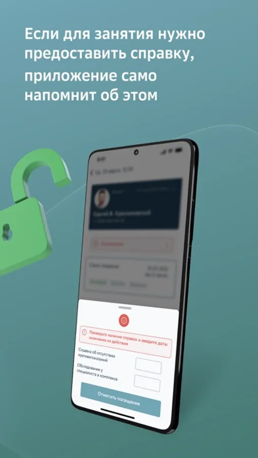 - валидация возможности посещения спортивной организации по предоставленному билету/абонементу;