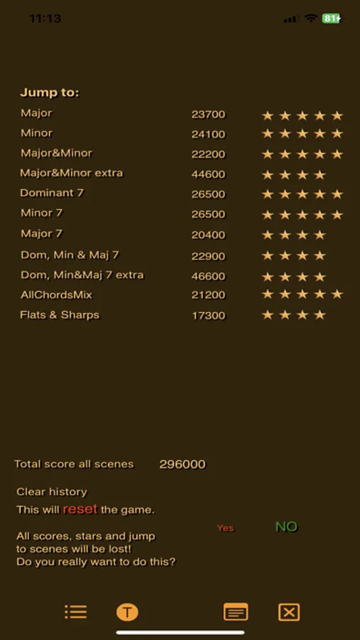 Major, Minor, 7, Minor7, Major7 in all keys.