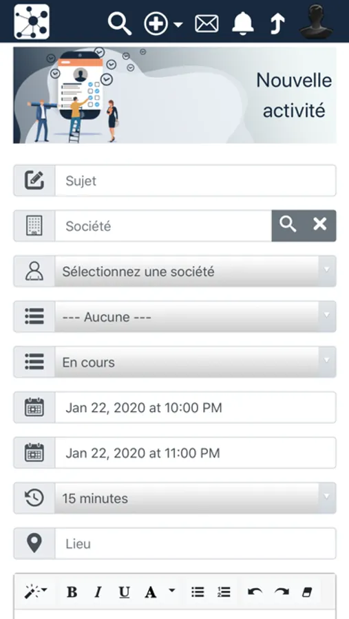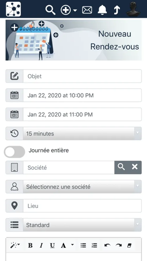 Gestion et synchronisation de l’agenda et des rendez-vous, tâches, rappels et alertes automatisés, événementiels