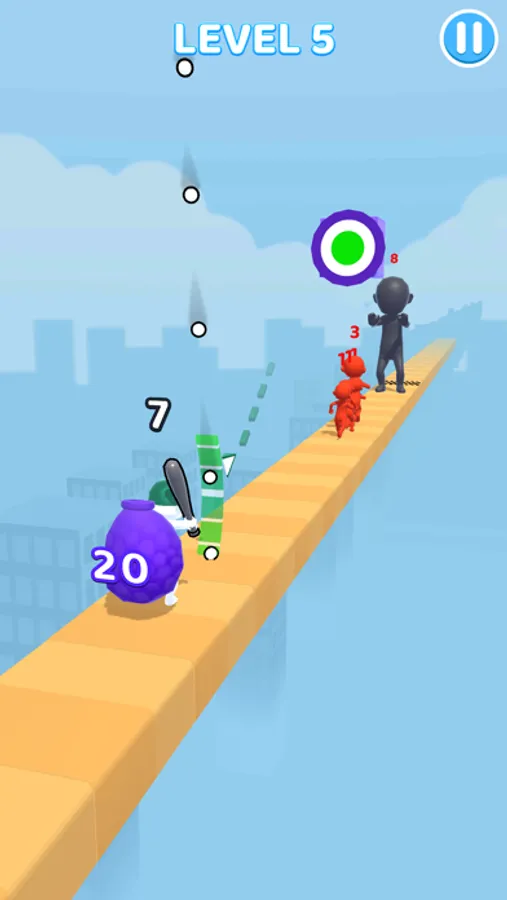 Enemies are escaping from you! RUN AFTER and CATCH UP TO THEM! Count your balls in the bag if you have enough to throw and shoot! Use your baseball bat, shoot with the perfect angle, smash enemies before they escape. High tempo shooting game!