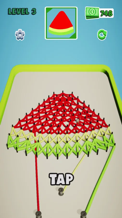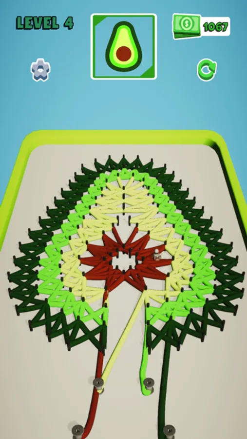 Move towards each string and start weaving the string around the pins to create a masterpiece. Check the referance model, if you mess up, just un-weave and try again!