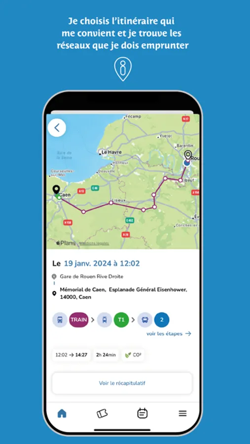 Avec l'application Atoumod, découvrez les itinéraires réalisables en train, car, bus ou encore à vélo partout en Normandie.