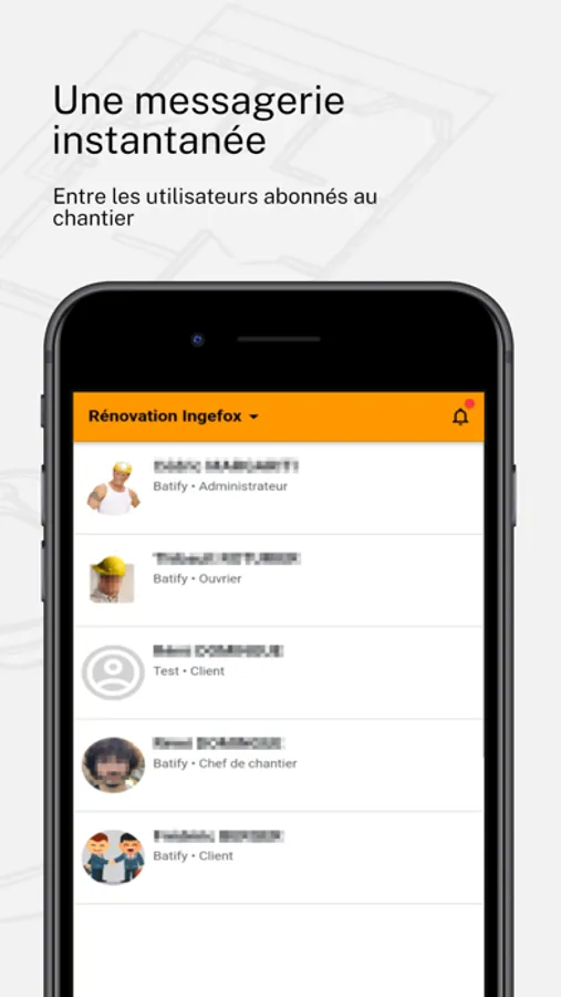- Une messagerie instantanée entre les utilisateurs abonnés au chantier