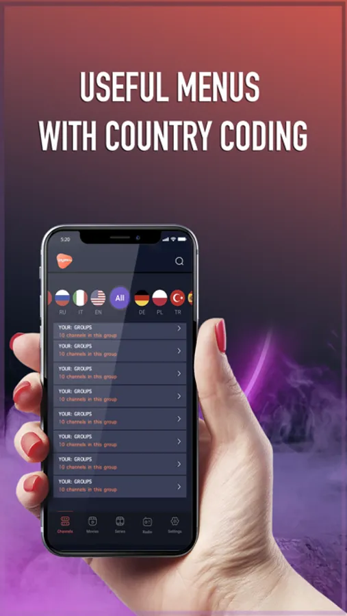 Create your own list and access live TV channels such as movies, series, match broadcasts, radio in the fastest and easiest way.
