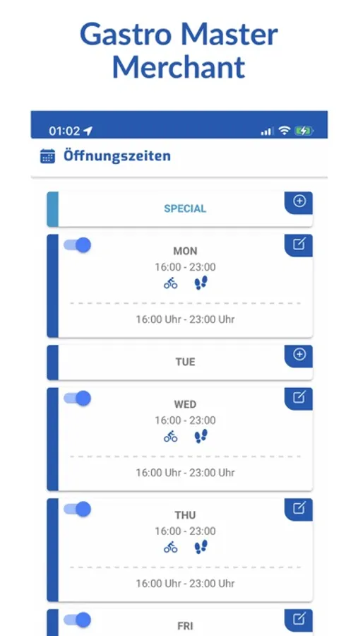 Sonderöffnungszeiten einrichten