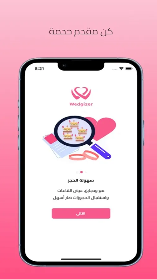 تطبيق ودجايزر هو سوق الكتروني متخصص في قطاع الافراح والمناسبات يجمع في مكان واحد مقدمي الخدمات كاصحاب القاعات و القصور و المنتجعات مع العملاء الراغبين بتنظيم حفل زفاف ، عيد ميلاد ، خطوبة ، اجتماع عمل أو أي مناسبة أخرى.