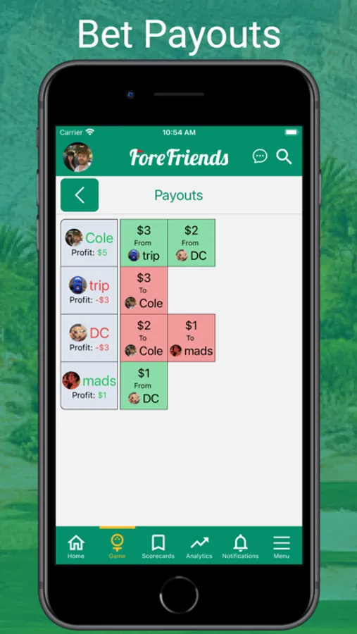 - Payout Calculator: Say goodbye to complicated calculations. ForeFriends calculates payouts for various betting games, making it simple to distribute winnings among friends.