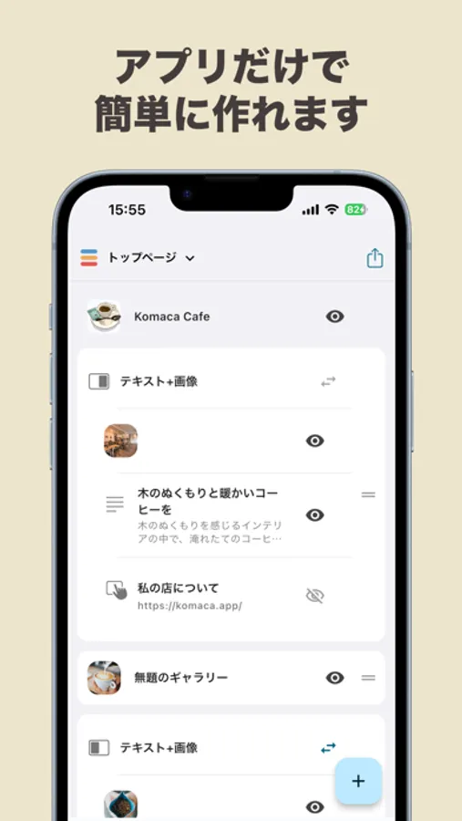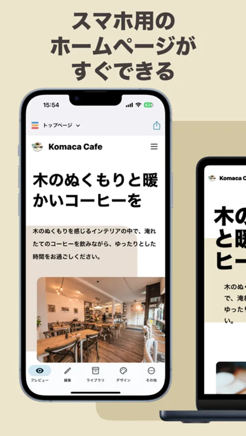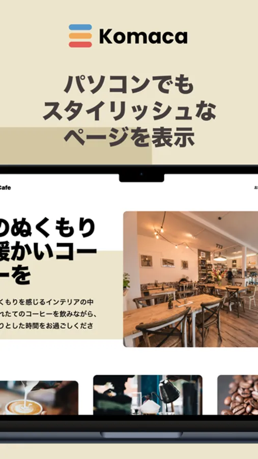 Komacaなら、アプリを使って無料でホームページ制作を始められます。