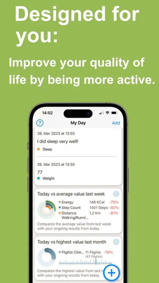 • Many additional bio markers (heart rate, heart variability, walking asymmetry, …) and symptom tracking that can be visualized and compared
