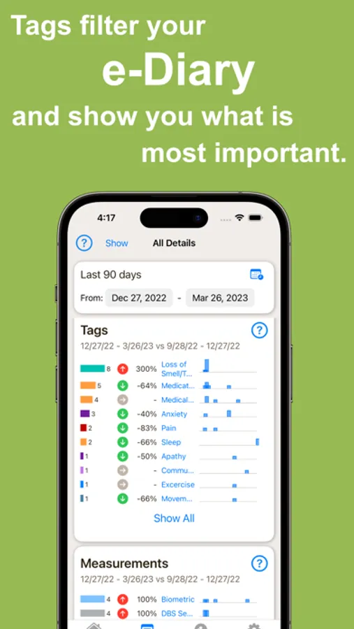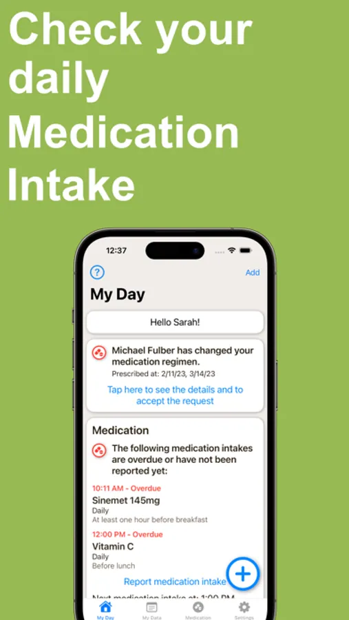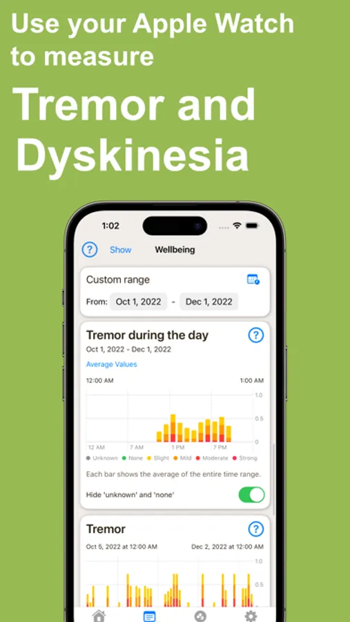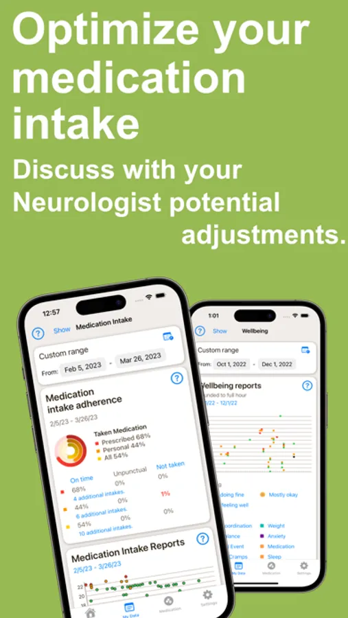 • Share your data with your neurologist or caregiver (select which data you want to share and with whom)