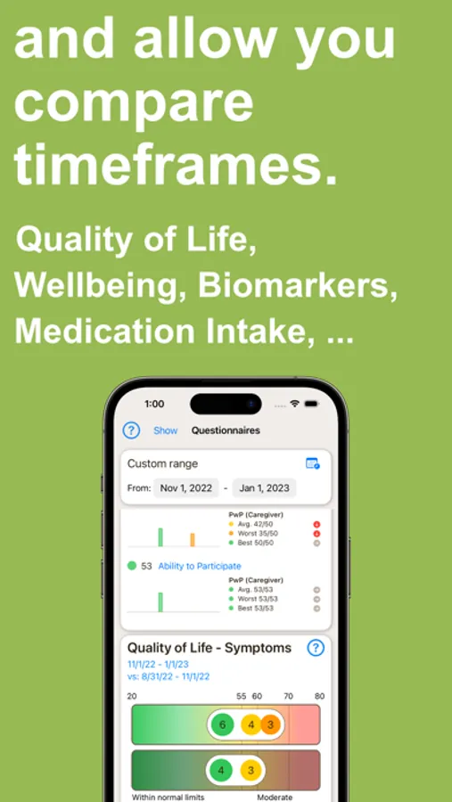 • Clinical validated questionnaires to track your Quality of Life (the results will be visualized in this app)