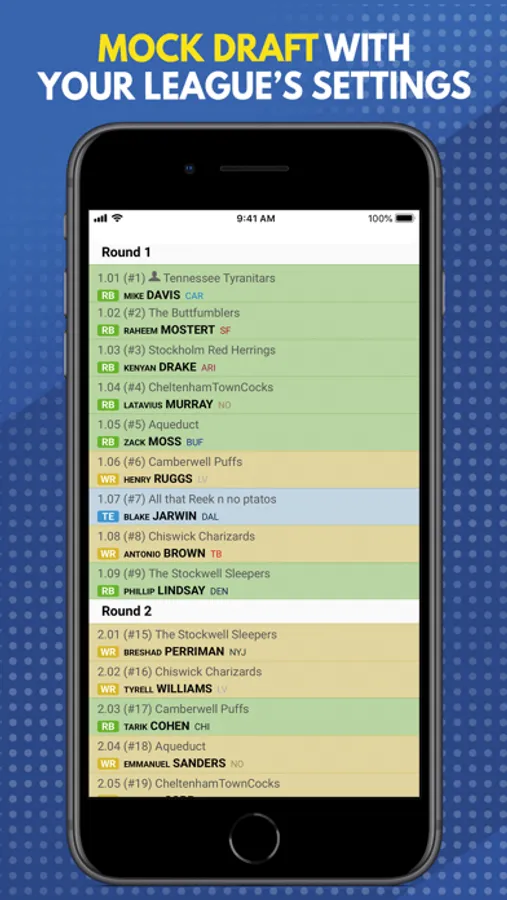 • Editable mock drafts - if you know how a league mate drafts, it’s easy to input their preferences into the app