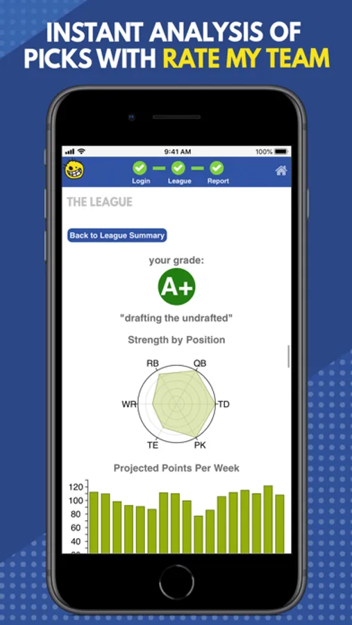 • Review your fantasy football draft with our unique and industry-leading Rate My Team system