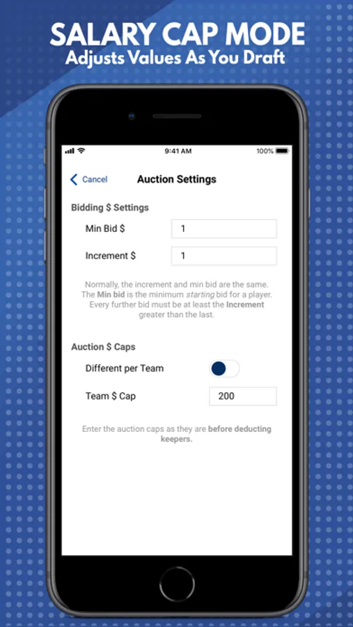 • Dynamic Auction Values that change as players are removed from the draft board according to other teams over- or under-paying