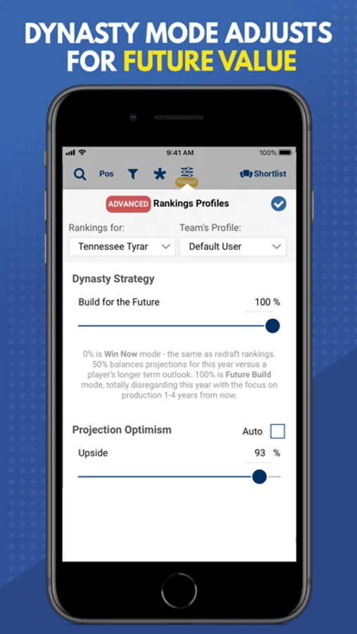 • Draft strategy controls that adapt to the progress of the draft - factoring in more upside as your draft progresses