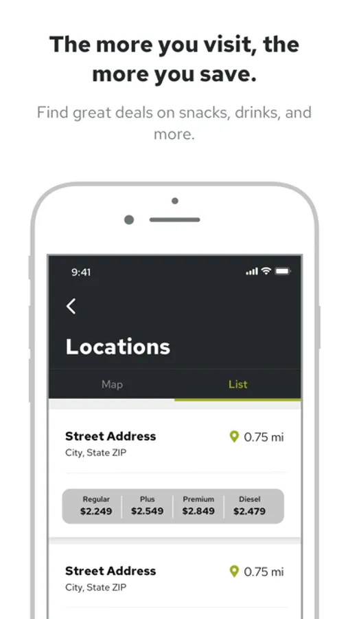 - Find deals on snacks, beverages, and fuel