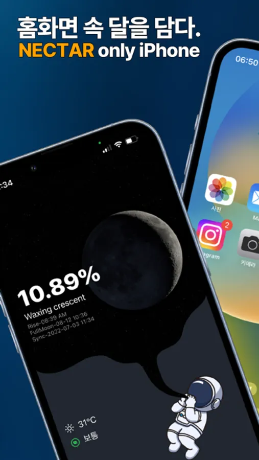 위젯을 추가하여 홈화면을 달로 채워보세요.
