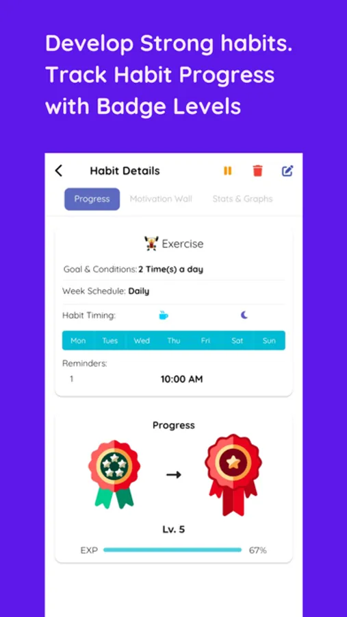 Level up your habits with Badges. Keep Habit Tracking fun and engaging with our badge leveling system.