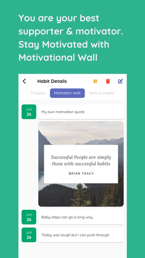 Reminder, progress tracker, routine planner, Motivational Wall, and Vision Board to keep you motivated.