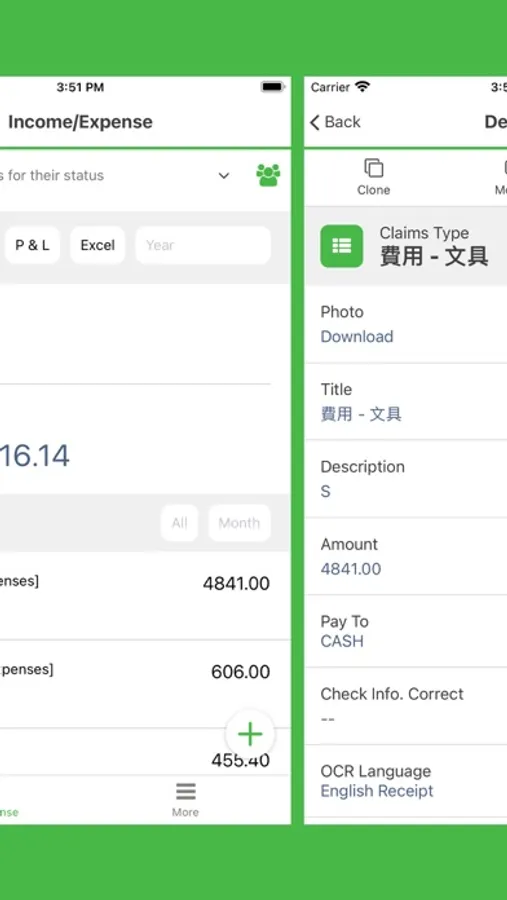Receipt will save in different category in Income/Expense, and generate P&L reports