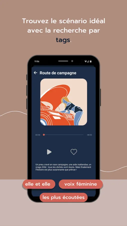 Découvrez nos histoires variées écrites par des auteurs et des autrices, incarnées par des comédiens et des comédiennes. Fiction unitaire ou série, notre bibliothèque vous donne accès à des histoires inédites de 5 à 15 minutes pour un moment hors du temps.