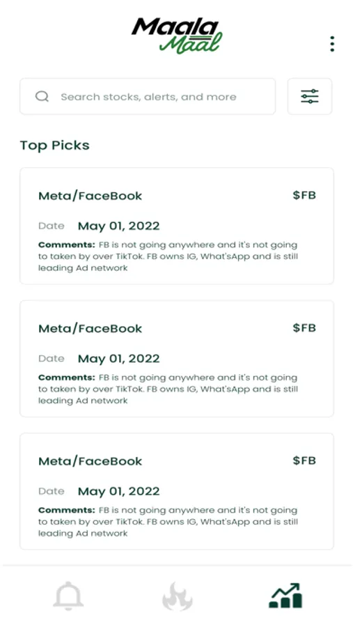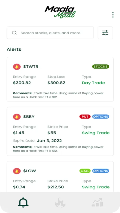 Join thousands of Nepali traders who never have to again look for stocks or options to trade. We take all the hard work out of trading in the stock market. With Malaamal App, you get everything you need to start making profitable trades daily. Get alerts about stocks and options on your app, SMS message, and email.