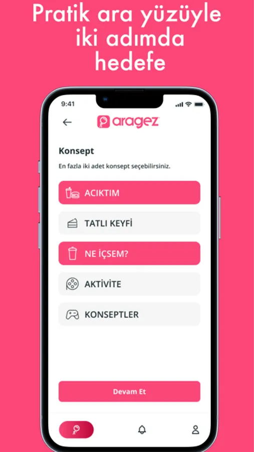 Aragez ile seçimlerini tek bir mekânda görebileceğin gibi, dilersen farklı mekânlarda da toplam tutarı belirlediğin bütçe sınırında olacak şekilde planlayabilirsin. Böylece bütçe sınırların dahilinde önce bir yerde yemek yer ve ardından bir başka yerde güzel bir kahve içebilirsin.
