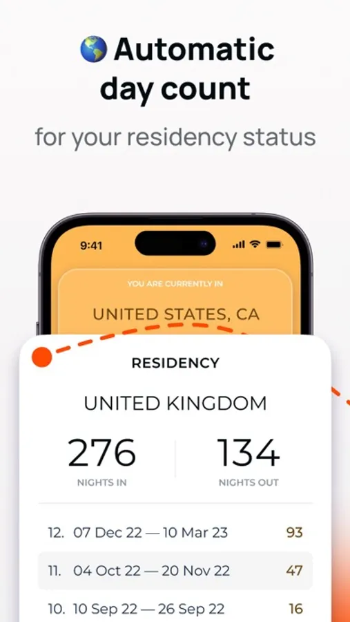 Flamingo helps you determine your physical presence for domicile and residency by automatically recording and counting how many days you spend there.