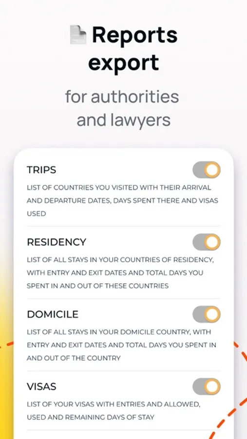 Your travel, residency, and visa data is stored locally only on your device. We do not collect, nor store, your information on our servers.