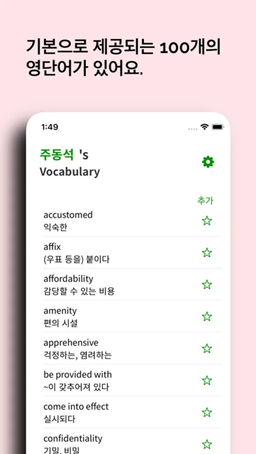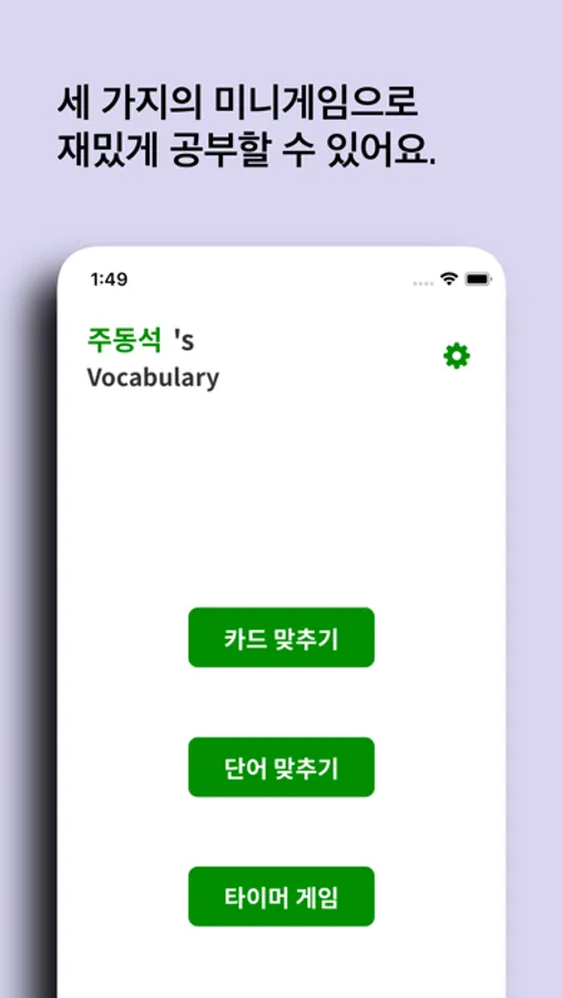 기본으로 제공되는 100가지의 단어와 카드뷰, 3가지 미니게임을 통해