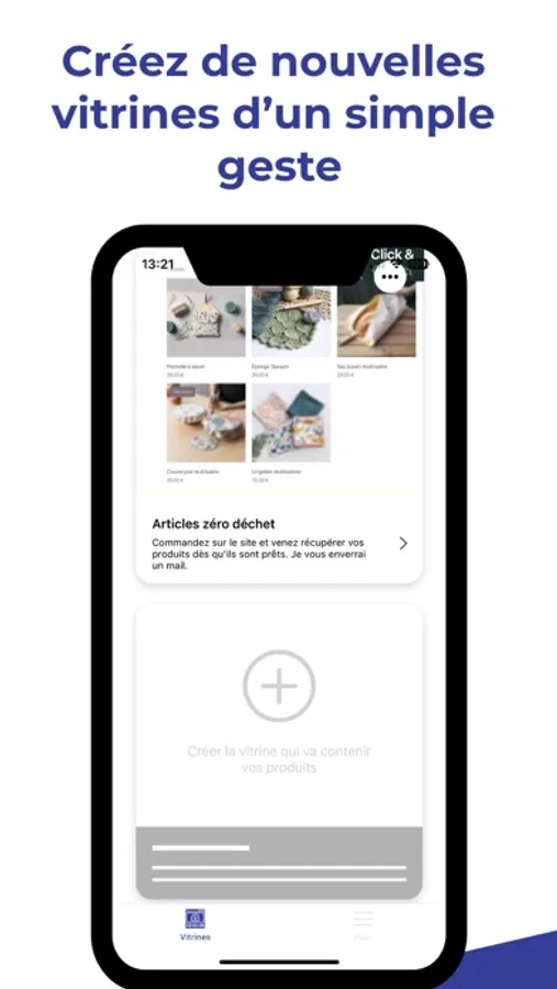 - Création de vitrines produits/événements/ateliers découvertes avec import des photos directement depuis Instagram ou en instantané via l’appareil du smartphone
