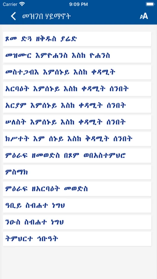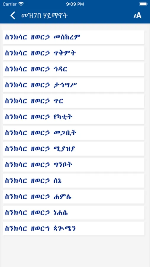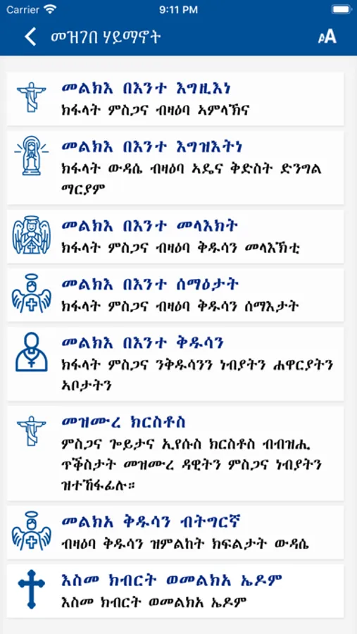 Mezgebe Haymanot is a mobile application with huge Ethiopian Orthodox Tewahedo Church Books Collection in Tigrigna. The Application contains more than 100 Orthodox books with multiple categories. The application contains multiple prayer books, rites, psalmodies, hymns, melodies, services, sacraments of the Ethiopian Orthodox Church. Hymn books of saint Yared, Liturgical books, Books of Aba Giyorgis Zegasicha, Prayers of Saints and Angels, Bible Commentaries, Canonical Books,