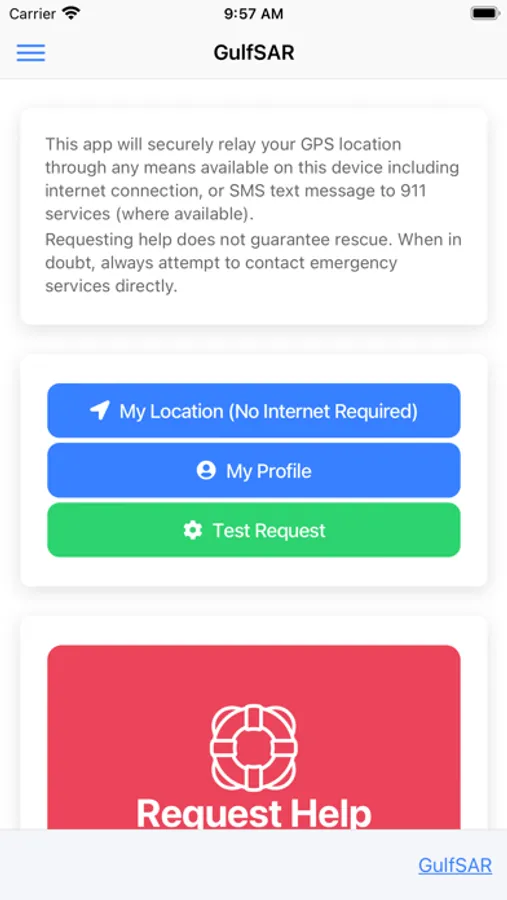 That's where GulfSAR comes in. With GulfSAR installed on your smartphone we will use any connection available including internet connection and text message to get your emergency to the right emergency services along with your exact GPS coordinates to help emergency responders get to your location faster. Any emergency that you send through GulfSAR will send all relevant data first through your device’s internet connection (if available) and then via SMS text message through the “Text to 911” service (where available), thus increasing the odds even during natural disasters that your situation will be communicated to emergency responders.