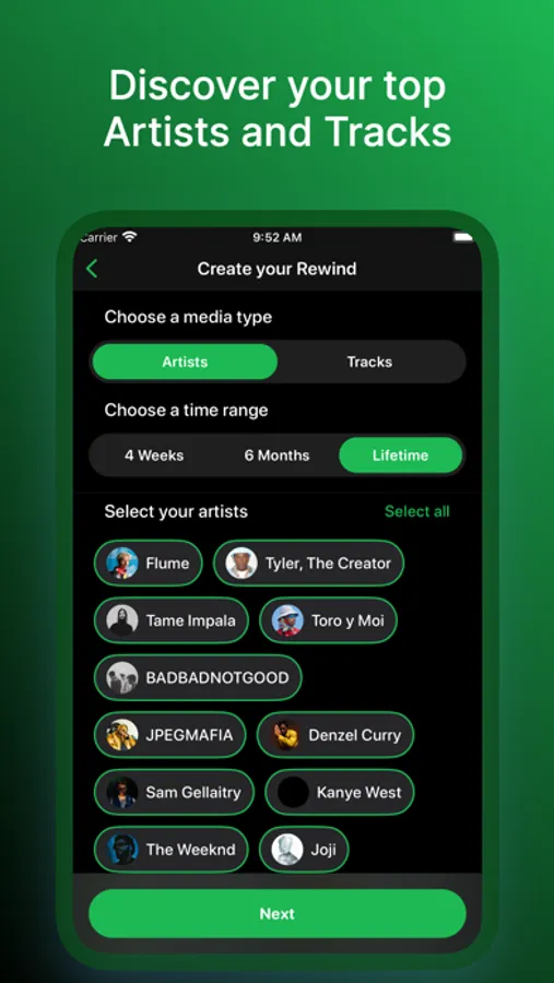- Create personalized playlists featuring the top tracks and artists in your listening history.