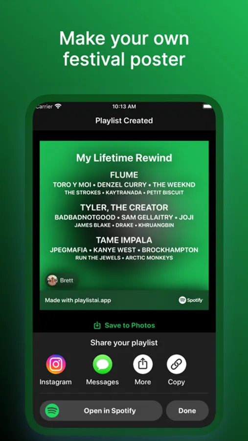 - Upload an image (like a music festival lineup) and PlaylistAI will make you a playlist of the artists in the image.