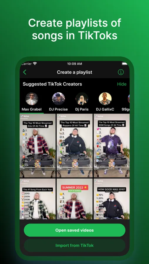 - Provide a video (like a TikTok that plays multiple songs) and make a playlist of the songs in that video.
